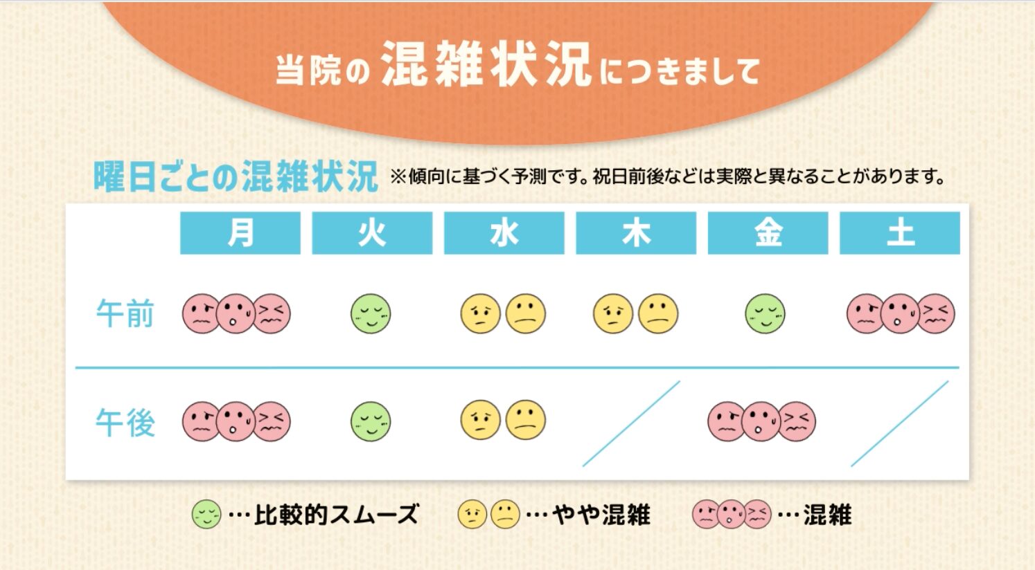 週明けや連休明けは、受診される方が多く、特に混雑しやすい傾向がございます。